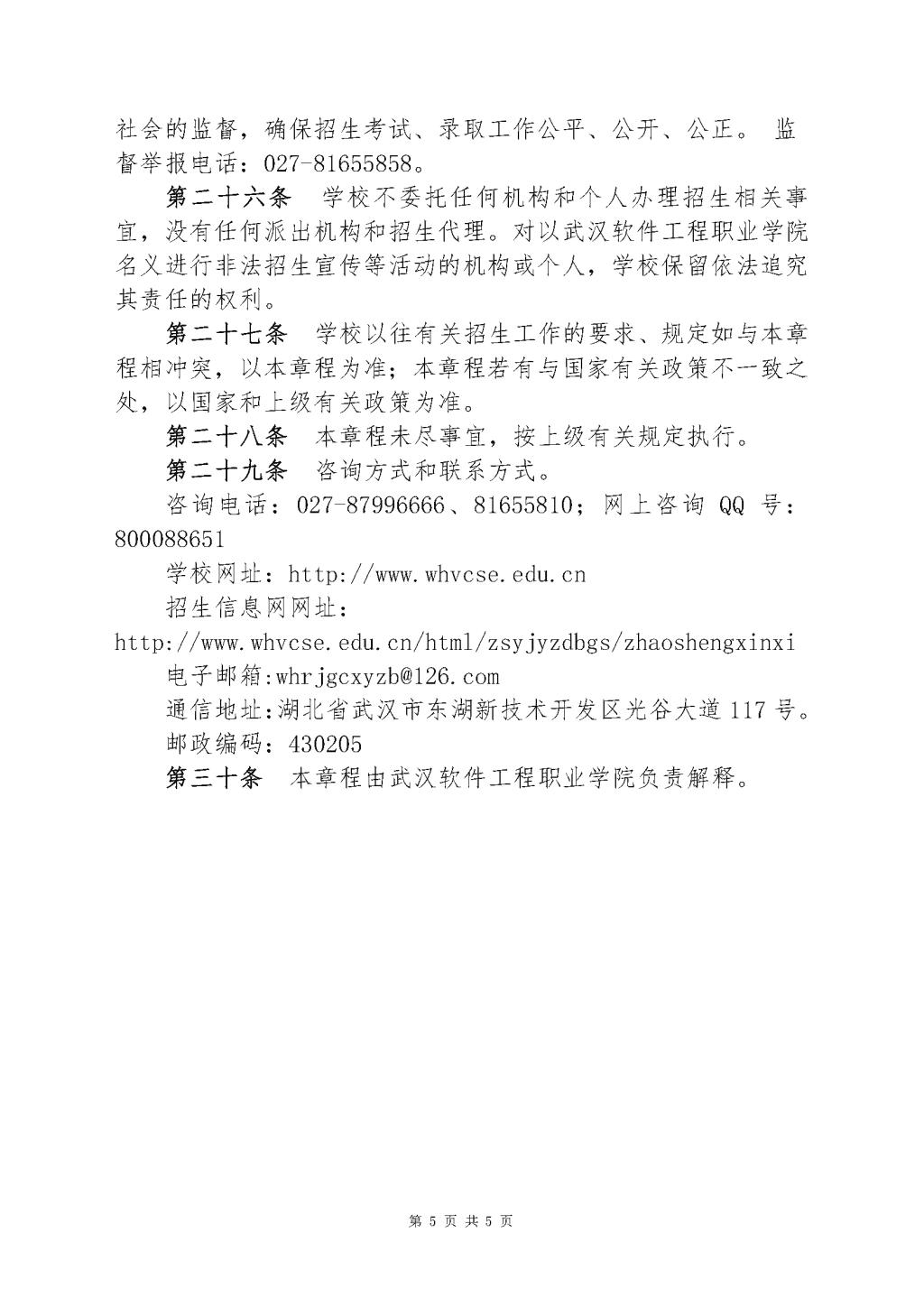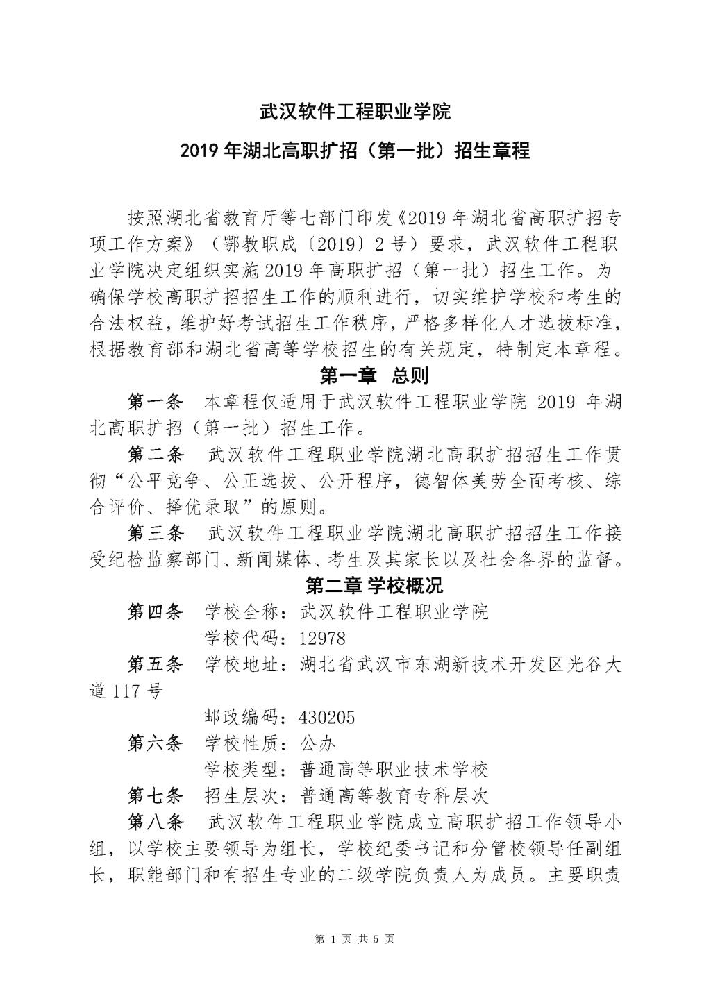 2020年武汉软件工程职业学院招生章程