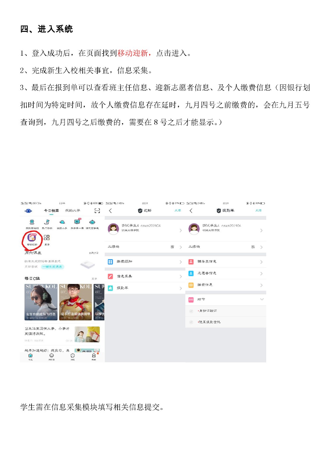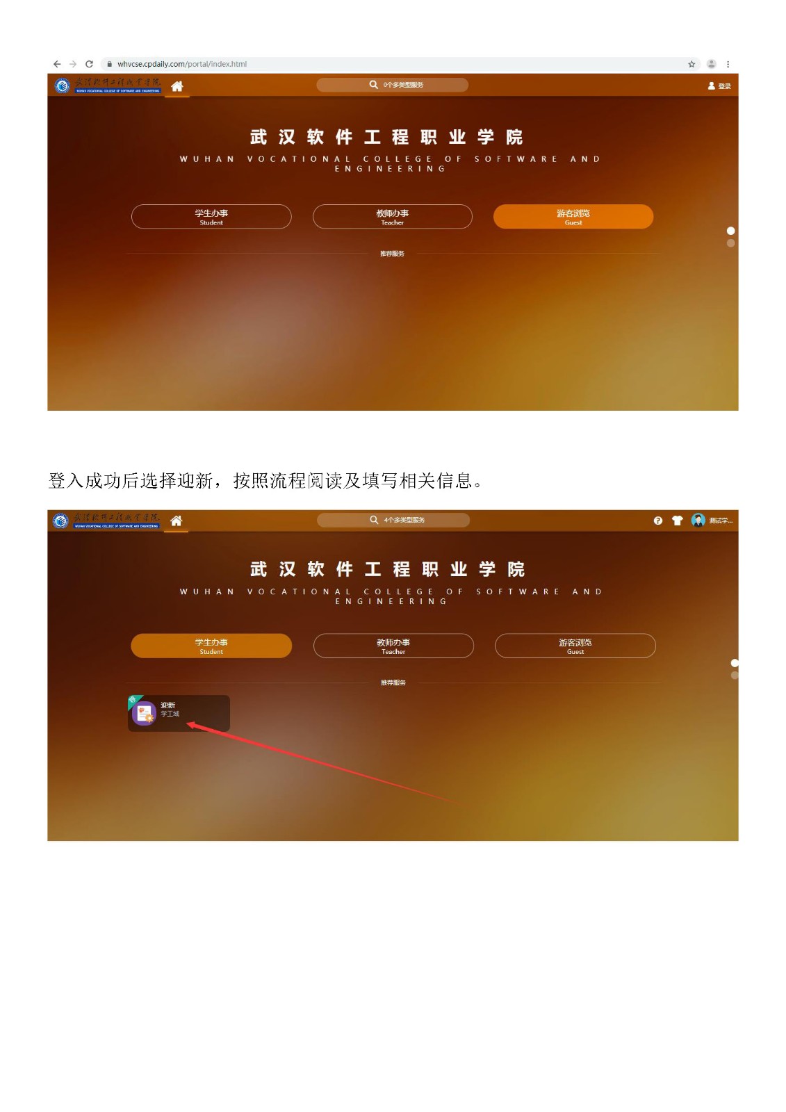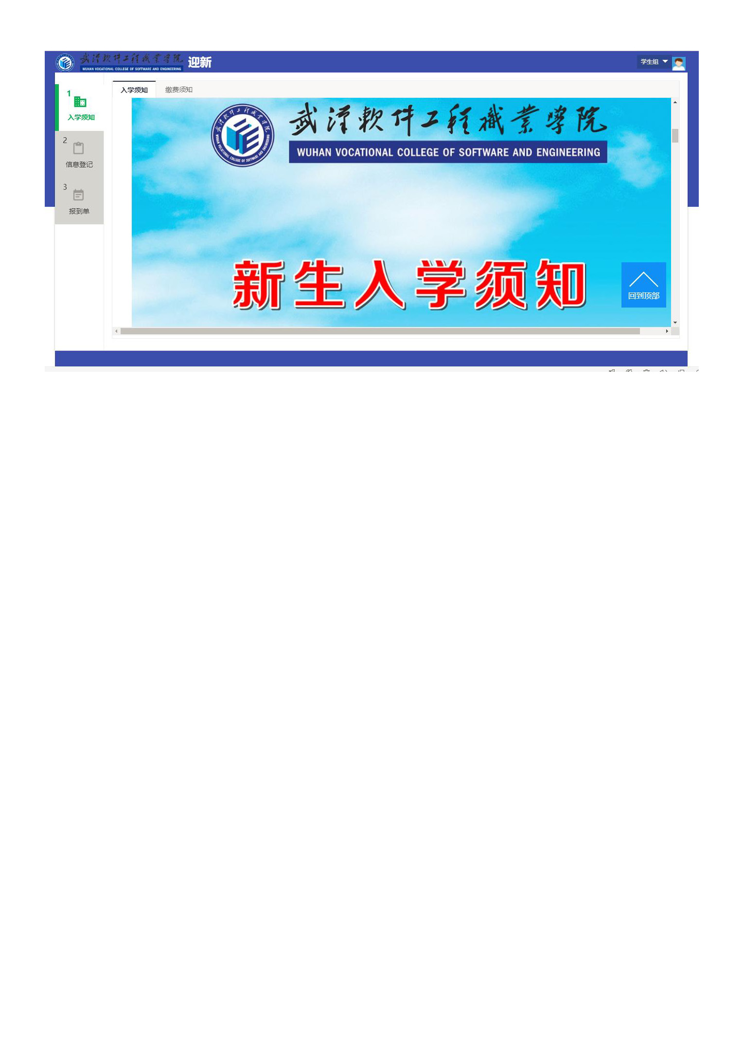 2019年武汉软件工程职业学院迎新学生端操作手册